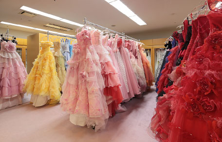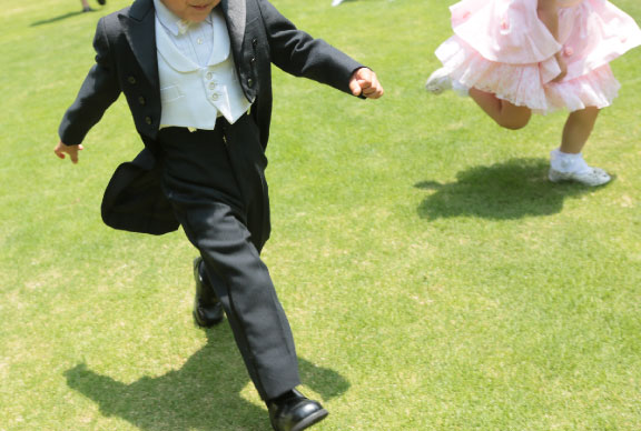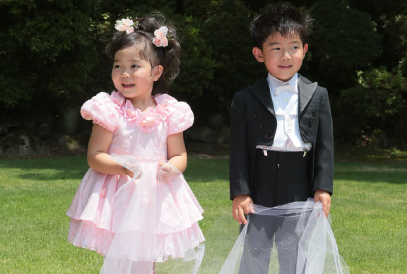 ご両親様、ご親族様とそれぞれのお立場やご年齢によってお選びいただけるよう、留袖・モーニングのほか、様々な衣裳を多数ご用意しております。訪問着・色留袖・中振袖・フォーマルタキシード・略礼服・お子様のドレス・燕尾服など、多彩な衣裳のなかから、慶びの日に相応しい、華やかな装いをお選び下さい。