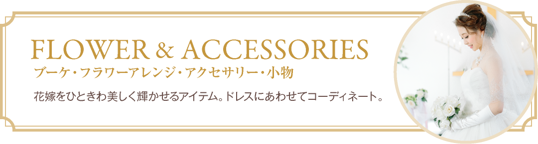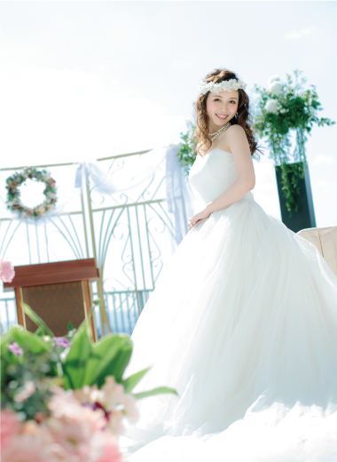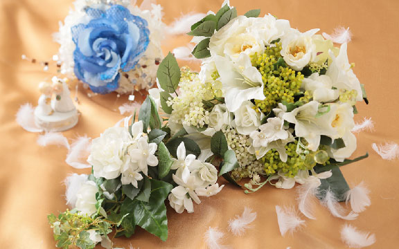 お二人のイメージに合わせてプリザーブドフラワーを使ったブーケ、アクセサリー、小物など様々なウエディングスタイルをご提案させていただいております。他にも花嫁が当日を美しく迎えるために欠かせない、ヘアメイク、エステ、ネイル、スパ・・・など、プロフェッショナルなスタッフが、最高の1日を演出します。