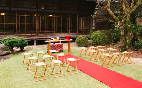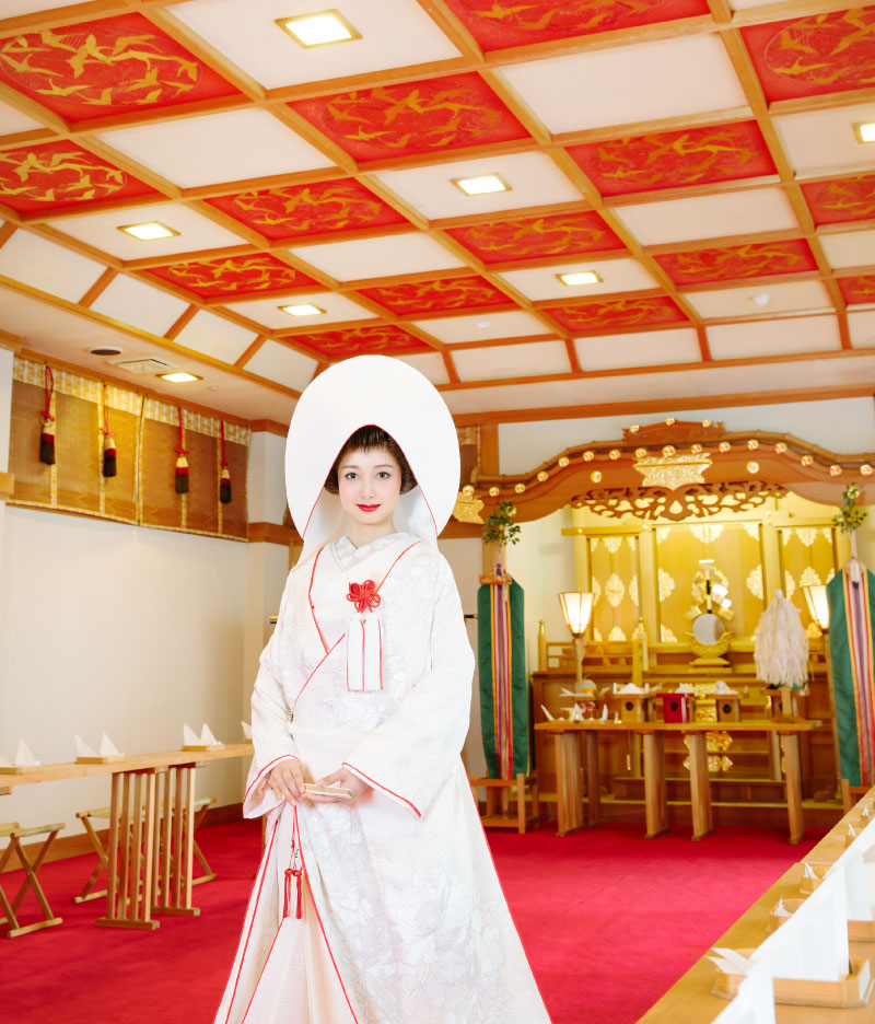 和のウエディングが見つめ直されている昨今、古式ゆかしい神前式の挙式なら館内の神殿「出雲殿」はいかがでしょう。