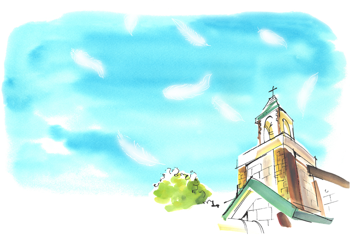 小さな森をぬけると、そこに佇む白を基調としたチャペル。